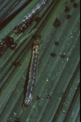 尖翅褐弄蝶的幼蟲( 詹見平 攝 )