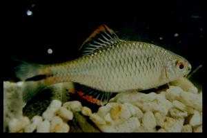 革條副鱊俗稱臺灣石鮒、牛屎鯽(其實牠長得 還不賴)。尾鰭中央有一條黑色縱帶到臀鰭上方, 臀鰭末緣為紅色與黑色併排,體側鱗片後緣有黑邊 ,體側中央有一條藍黑色綜帶到臀鰭的上方。繁殖 季有白色追星,嘴角有1對鬚。