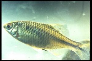 革條副鱊的雌魚也具有細長的產卵管,習性也 和鱊魚相同,會把卵產在二枚貝的鰓瓣內,藉蚌的 保護而孵化。雌魚除體側後部的黑色縱帶以外,全 身為均勻的淺黃褐色。 革條副鱊以附著性藻類和水生昆蟲為食,體形 小,最大只能長到6-8公分。