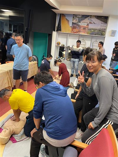 進行方式: 1.請太平區消防局太平分隊派員到校來做CPR及AED急救的使用說明和操作訓練。 2.講師透過簡報的介紹與詳細說明心肺復甦術的急救過程與應注意的方法並播放影片加深印象,清楚知道施以CPR及AED的重要性。 3.進行教職員分組實際操作演練,講師從中指導正確動作及施作原則。 成果描述: 經過講師的詳細解說及親自操作練習之後,教職員在講師與護理師專業的指導下,實際操CPR及AED,一對一指導下,動作更為正確。