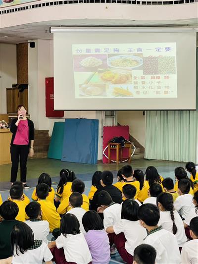 此次演講主題是由營養師為本校低年級所設計的天天吃早餐課程,透過介紹六大類食物,延伸出正確吃早餐的健康價值,演講過程中不難看出營養師具備豐富的演講經歷,針對一年級的學生採取生動活潑的講解方式,精采程度絲毫不減。