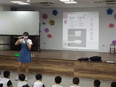 由於一年級九月剛進入國小學習,本校每年都會以齲齒防治費提供每位學生一組潔牙用具,並且由本校護理師進行一節課的口腔衛生宣教。