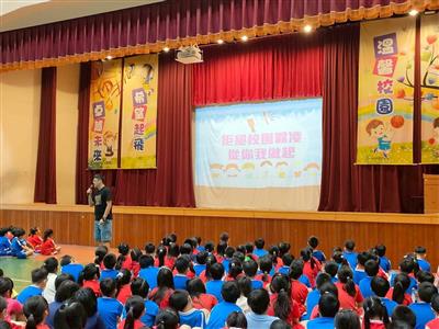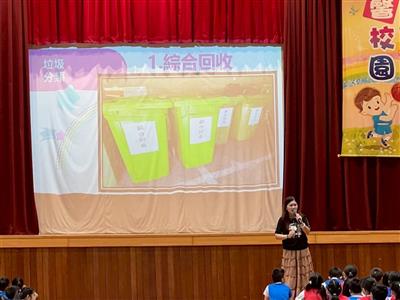 透過開學始業式向全校師生進行友善校園、安全教育、空品旗、垃圾分類及登革熱宣導。