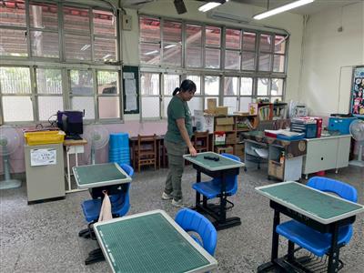 一.每學期寒暑假快開學前測量教室燈光。 二.教育部規定教室桌面照度不得低於500 Lux (米燭光),黑板照度不得低於750 Lux(米燭光)。