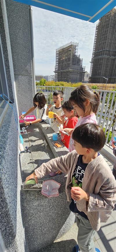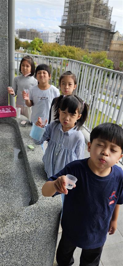 指導學生含氟漱口的步驟:取適量漱口水、輕輕漱 1 分鐘、吐掉漱口水,並提醒漱口後 30 分鐘不進食或喝水。