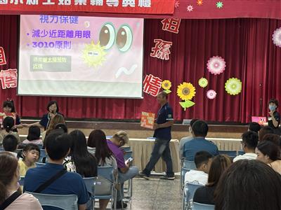 本學年班新生活動於8月30日上午8:00舉辦,護理師於會中說明健康促進學校七大議題(視力保健),向家長宣導其重要性及內容。