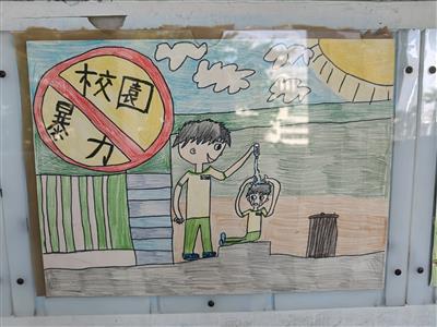 以「認識霸凌、拒絕霸凌」為核心主題,透過宣導講解與藝術創作相結合,引導學生建立正確的反霸凌觀念。課程一開始,教師先說明霸凌的定義與類型,包含肢體霸凌、言語霸凌、關係霸凌及網路霸凌,並搭配生活化的實際案例,協助學生辨識「看似玩笑、實則傷害」的行為。接著引導學生思考當自己是被霸凌者、旁觀者或施暴者時,可能產生的感受與責任,強調同理心與勇於求助的重要性。最後以繪畫創作作為學習統整活動,讓學生將對霸凌的理解、反霸凌的態度,以及心中理想的校園樣貌呈現在作品中。學生透過色彩、角色與情境設計,具體表達「拒絕霸凌、守護他人」的想法,使抽象的觀念轉化為可視化的學習成果,也深化了課程的教育意義。