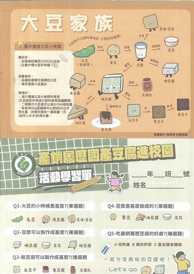 1.國產履歷豆腐進校園 2.鈣質很重要 3.植物性蛋白質 4.大豆家族