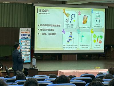 平時應養成良好用眼習慣,如保持正確坐姿、閱讀距離約30公分,每30分鐘休息10分鐘,多看遠方讓眼睛放鬆。避免在光線不足或過亮環境下用眼,並減少使用手機、平板時間。每天戶外活動至少2小時,有助預防近視。若出現視力模糊、眼睛疲勞等情形,應及早告知師長並就醫檢查。
